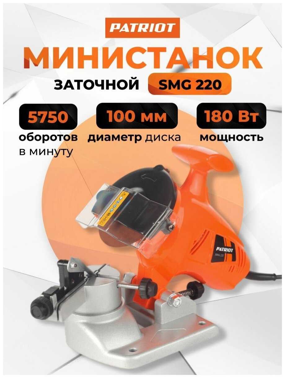 - + Электрический заточной министанок Patriot smg 220 сделанный в Китае хорошо себя зарекомендовал как простой и легкий в работе инструмент.