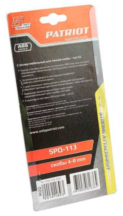Отзывы о Скобозабивной пистолет PATRIOT SPQ-113