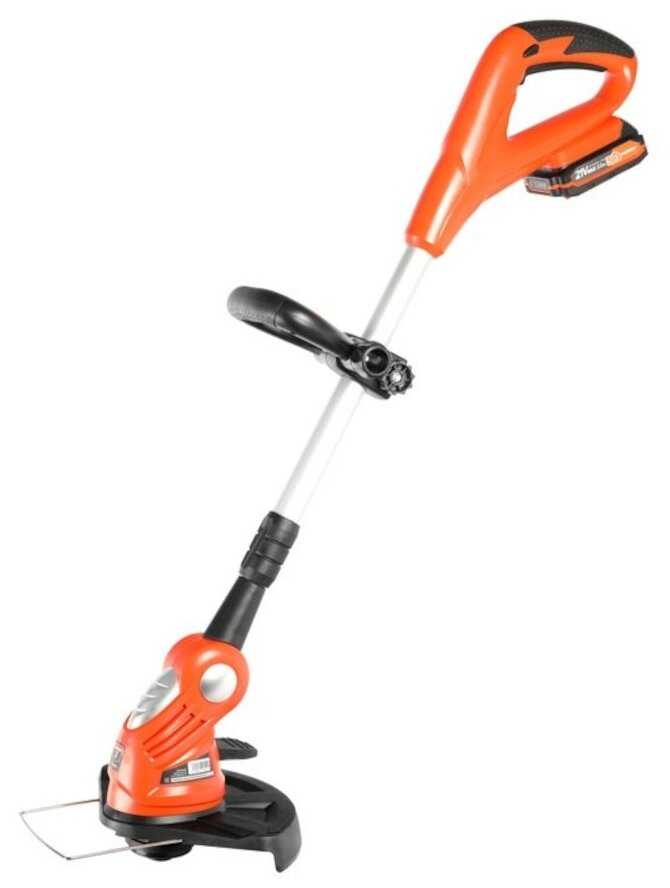| Подробная комплектация : | триммер в сборе 1 шт, рукоятка 1 шт, защитный кожух 1 шт, скоба защиты растений 1 шт, набор для сборки и монтажа 1 шт, фиксатор рукоятки 1 шт, катушка с леской 1 шт, инструкция по эксплуатации 1 шт, аккумулятор 1 шт, зарядное устройство для аккумулятора 1 шт |