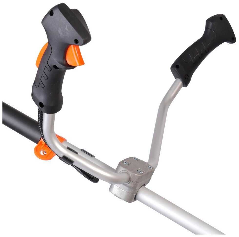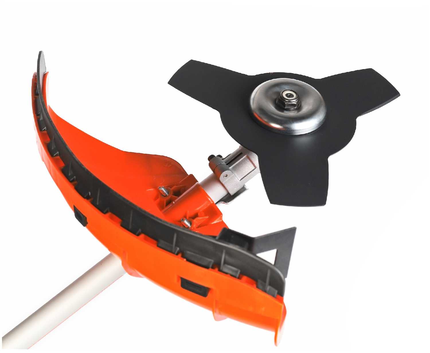 - Позволяет адаптировать триммер для работы в стесненных условиях (между грядок, заборов).