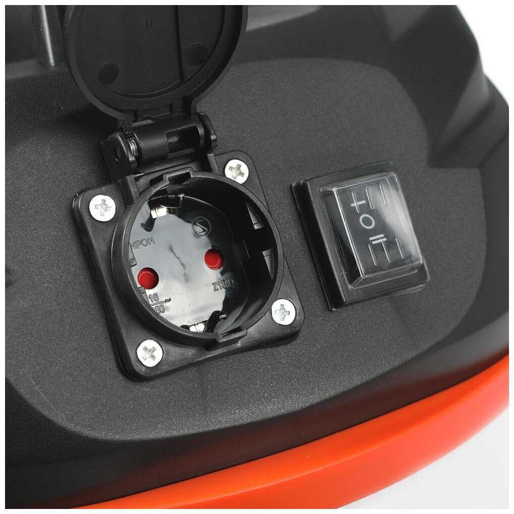 Кнопка с влагозащитой. - - Трубки отвратительные в комплекте. Плохо фиксируются друг в друге. Мягкий пластик - гнется, как удочка. Не комфортно работать. Резинка щетки при чистке ковра поднимает пыль и она оседает на трубках и щетке густым слоем - пластик слишком сильно электризуется. Пожалели положить в комлект щетку со щетиной вокруг сопла, это по сути же самая универсальная щетка для чистки инструмента и т.п. - придется докупать отдельно. Шланг из слишком тонкого пластика, не имеет жесткого корда внутри, если пережмется, перекрутившись, что очень легко происходит перегрузка двигателя. Не положили в комплект мешка из нетканого материала, только одноразовые бумажные.