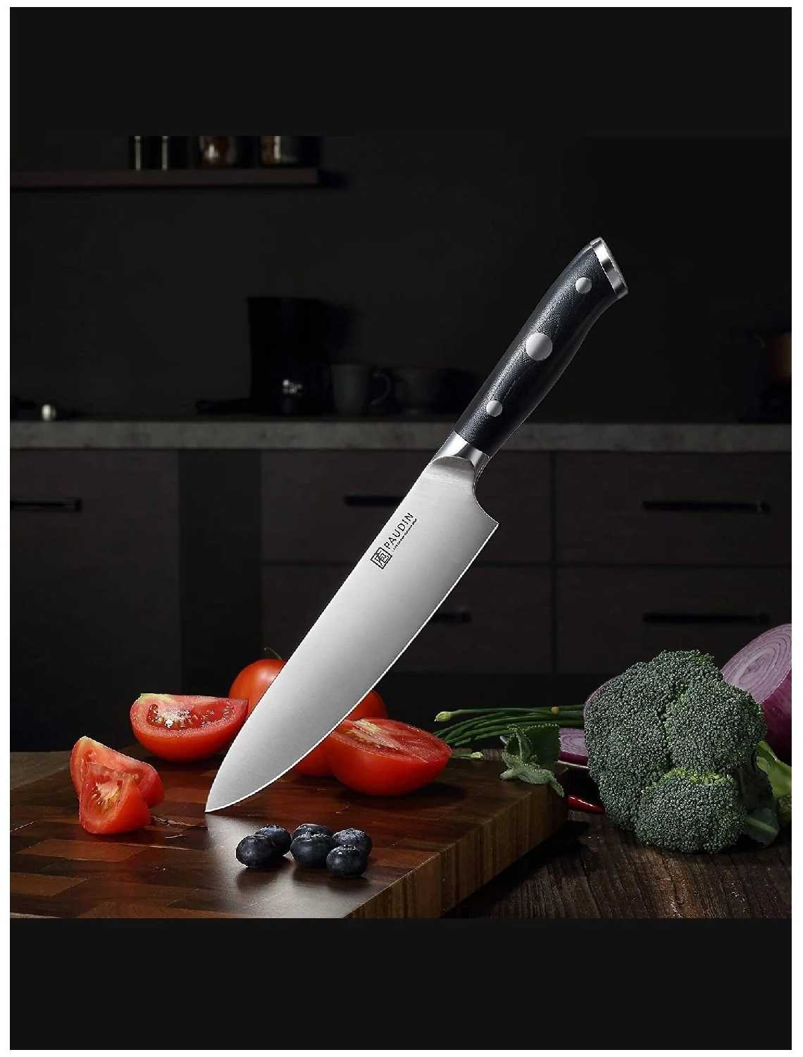 Брал до этого Paudin pro с деревянной рукоятью (кстати, он обошёлся мне дешевле на 1000) - отличный нож, особенно за те деньги, удобен, очень понравилась форма лезвия - прямое со скруглением ближе к острию, прекрасно держит заточку. Думал, исходя из названия, что новый нож будет таким же , только с полимерной рукоятью (работаю поваром, и рукоять предыдущего ножа из-за частого пребывания во влажной среде стала трескаться). Так вот ничего подобного. Другая форма лезвия , оно как бы все округлое, без прямой части - резать не удобно. Самое главное - это качество стали. У меня дешевые ноу-нейм ножи сделанные из «того самого и палок» держат заточку лучше чем это. Это очень плохой нож, не берите. Не стоит даже своей цены. За 3 тысячи с хвостиком можно найти более достойный вариант.