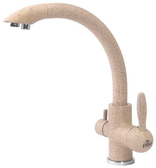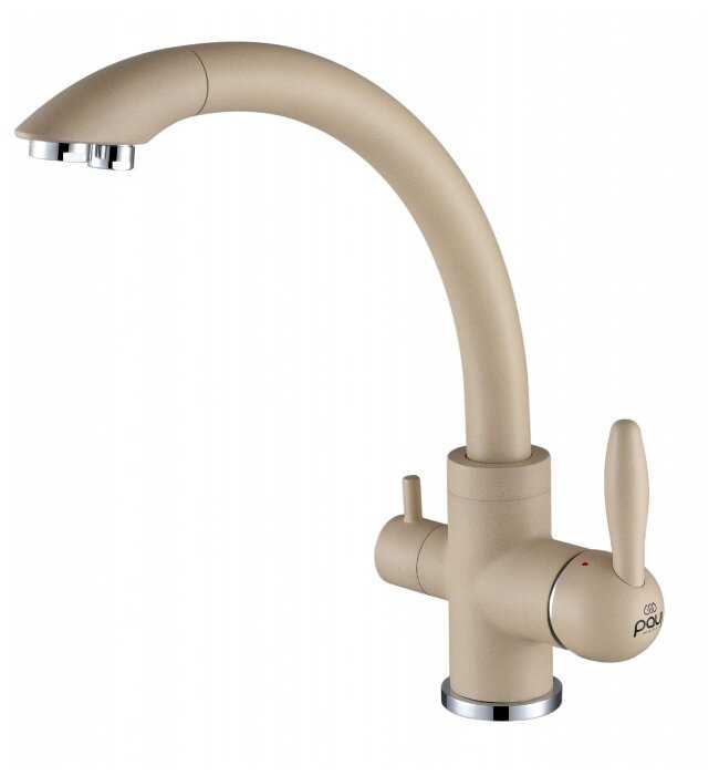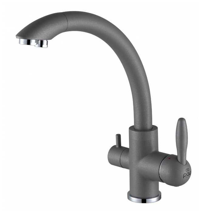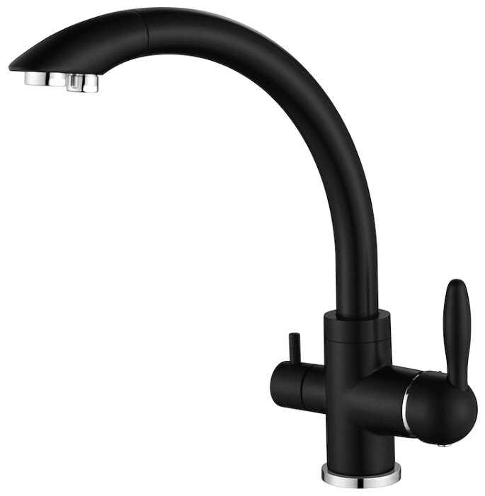 отличный смеситель для кухонной мойки. Высокий излив изогнутой формы оптимален для очищения кастрюль. сковород большого размера или если в раковине уже есть посуда. Кран поворачивается в стороны, можно смывать моющее средство с краев раковины. Рычажки удобные и не громоздские, двигаются легко. Есть возможность подключения системы фильтрации. И тогда второй рычажок будет включать подачу очищенной воды. Внутри установлен керамический картридж, они долговечные и на них не оседает ржавый налет. Кран с аэратором - струя делается мягкой и не хлещет по рукам, меньше брызгается.