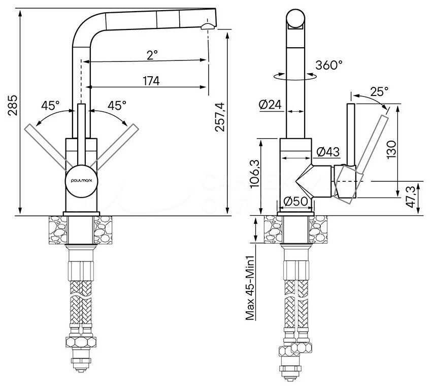 - высота излива: 257.4 мм.