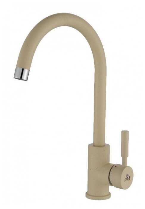 Смеситель сделан в стиле минимализма. У него простой и лаконичный дизайн. Высокий и изогнутый гусак удобен, когда нужно вымыть много посуды или набрать воду в кастрюлю с высокими бортиками. Сделан из латуни и покрыт каким-то специальным составом, который на ощупь мне напоминает искусственный камень. Форма излива приятная и правильная. На картинке он выглядит более массивным, но в реальности достаточно легко смотрится и не такой большой и громоздкий. Мне очень нравится. У него один рычаг, который регулируется сразу и температуру, и напор воды. Он ходит легко и держит положение. Я переживала, что будут проблемы с уходом. Но смеситель вообще не склонен к скоплению налета, а от разводов легко протирается даже бумажной салфеткой. Это лучший смеситель, который у меня был.