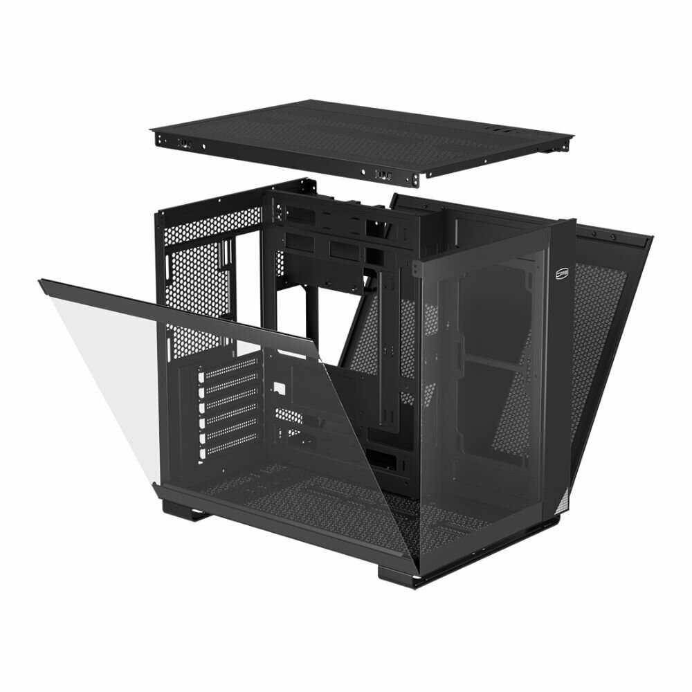 - + Корпус получился отличным вариантом, внутри куча пространства для аккуратной укладки кабелей, если всё собрать с умом, то выглядит просто супер. Можно доработать резиновыми заглушками в окошках для проводов, их легко заказать отдельно. Подходит под любую видеокарту, легко ставится водянка на три секции, воздух циркулирует нормально, а с качественными вентиляторами внутри ничего не перегреется.
