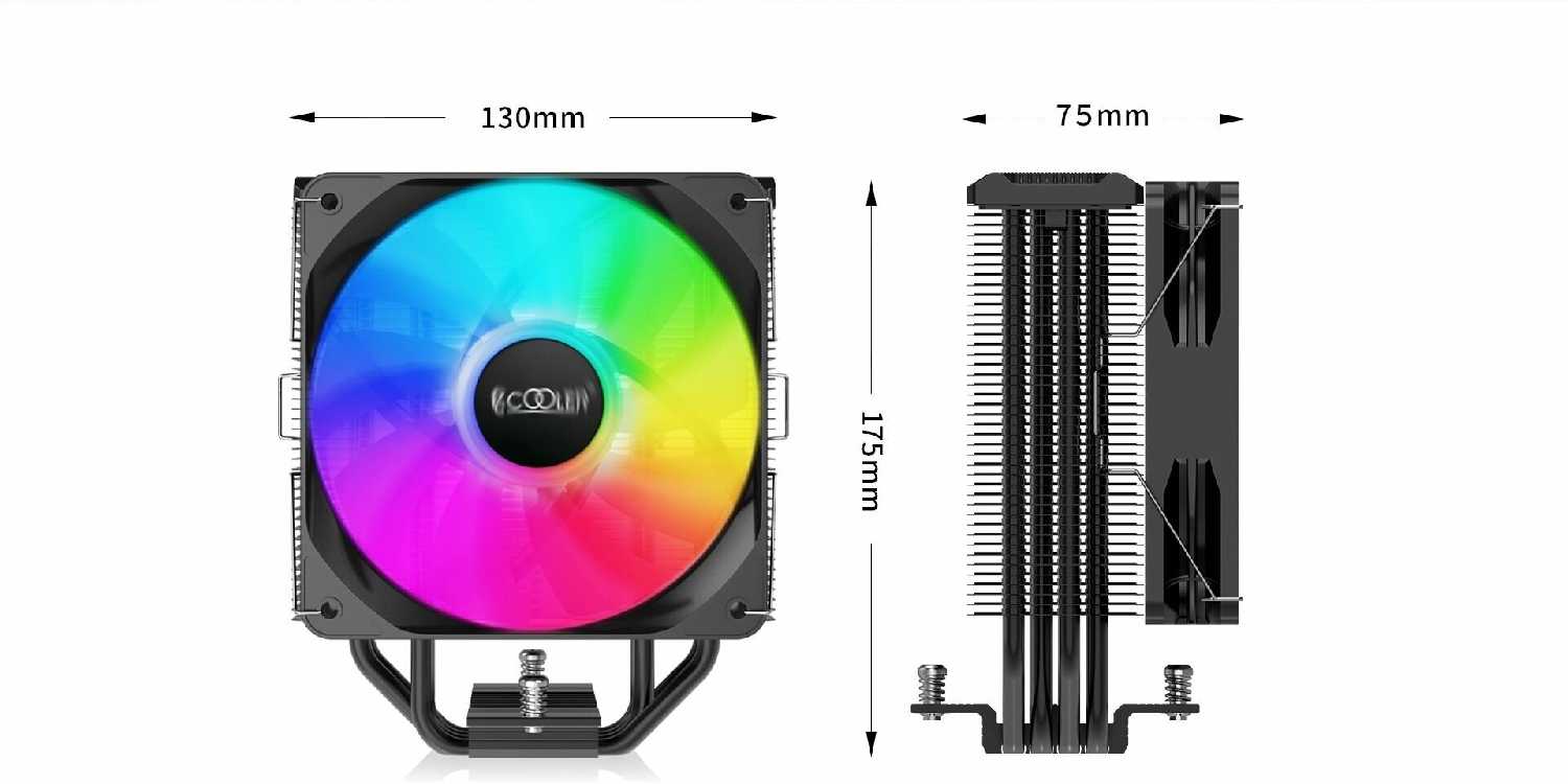 Благодаря узкому профилю (ширина 75 мм без вентилятора) он совместим с высокой оперативной памятью, но общая высота 158 мм требует проверки габаритов корпуса. В тесных шасси типа Micro-ATX возможны проблемы с зазором до боковой панели, а установка на платах с плотной компоновкой осложняется крупным основанием, перекрывающим слоты PCIe. -