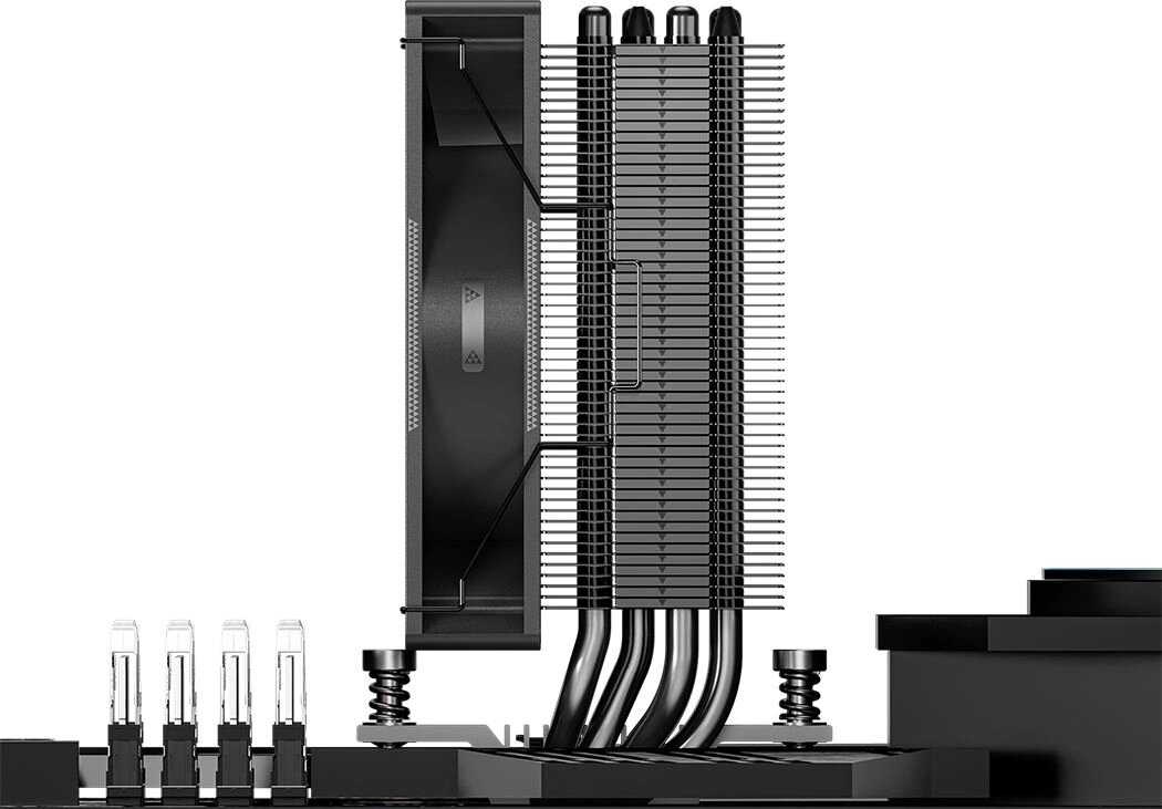- + Главное достоинство - цена! Я не любитель rgb-фишек, поэтому выбирал без подсветки. Тихий, красивый, недорогой, с гидродинамическим подшипником, хорошо охлаждает - заявленное охлаждение 235 Вт. Брал для процессора AMD Rysen 5 7600x.