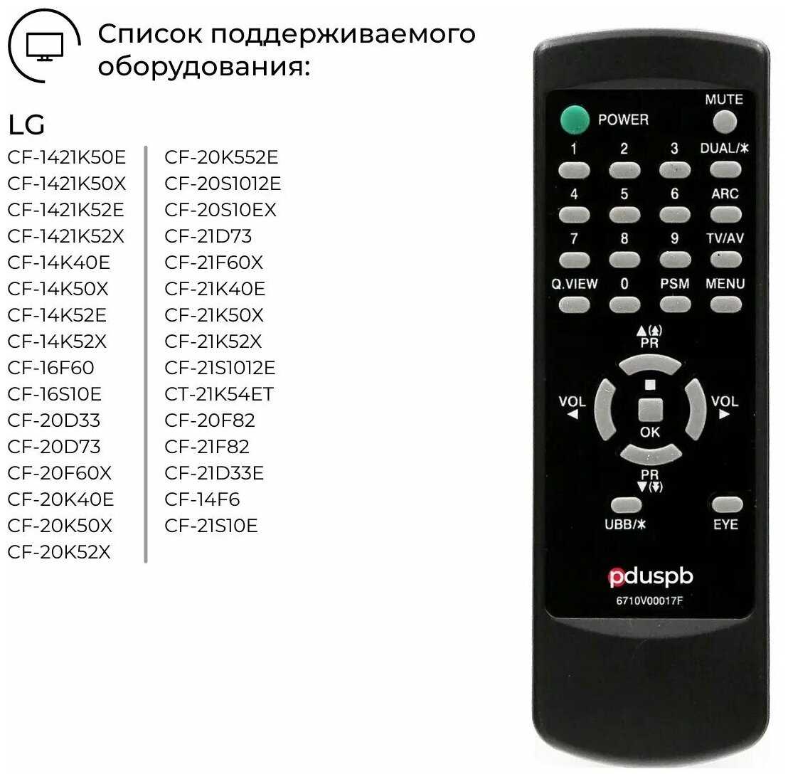 - назначение: для Пульт 6710V00017F подходит для телевизоров: LG CF-1421K50E