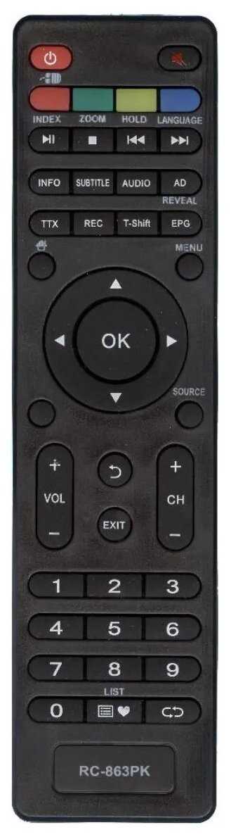 | Дополнительная информация : | Внимание! Данный пульт RC-863PK не универсальный. Он совместим только с телевизорами из списка поддерживаемого оборудования! Подробный список поддерживаемого оборудования смотрите в «Назначении». Для Вашего удобства мы также добавили инструкции по подборке пультов. Пожалуйста, ознакомьтесь с ними перед покупкой. Можете задавать вопросы, мы незамедлительно поможем подобрать пульт для Вашего ТВ. |