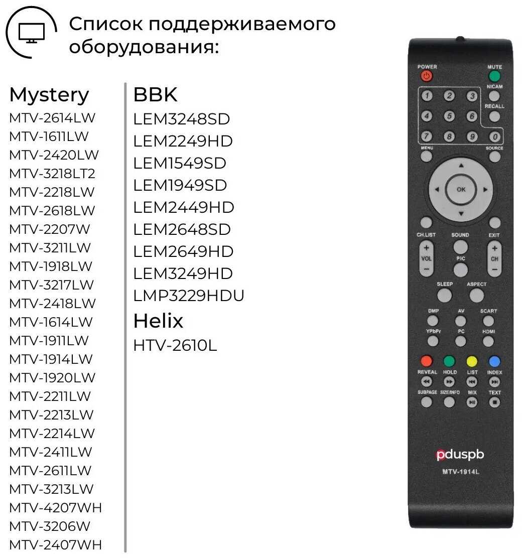 Отзывы о Пульт PDUSPB для Mystery MTV-1914L (BBK RC3229)