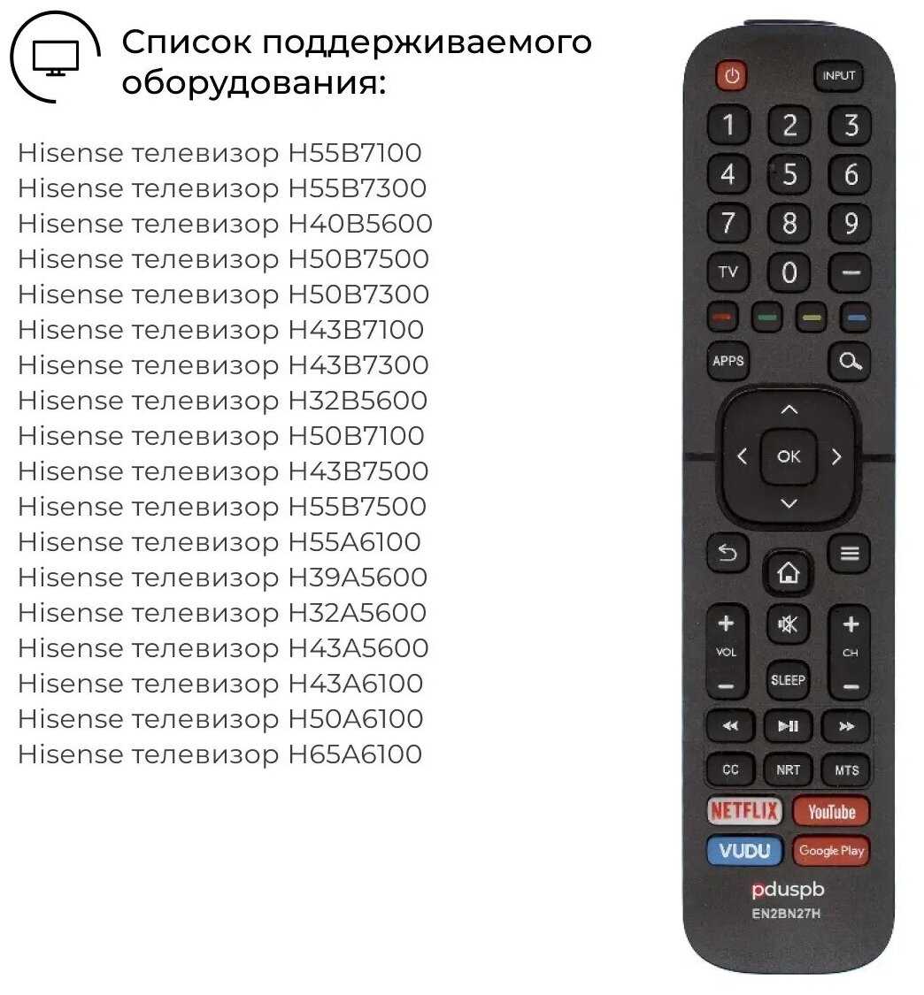 Отзывы о Пульт PDUSPB для телевизора Hisense EN2BB27H