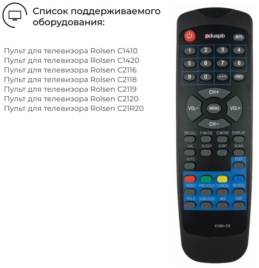 Назначение : | Rolsen C1410, C1420, C2116, C2118, C2119, C2120, C21R20 |