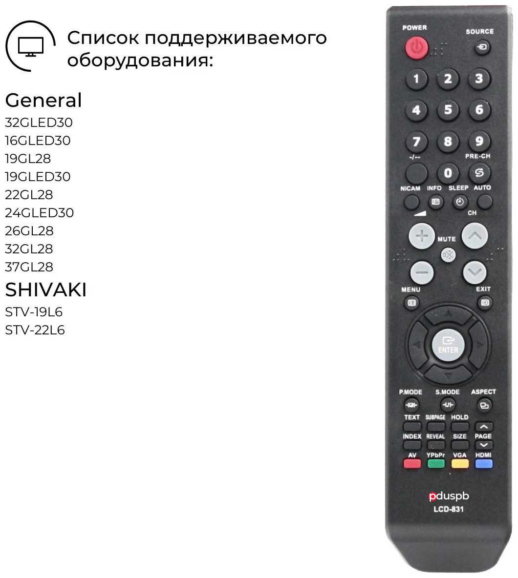 Отзывы о Пульт PDUSPB LCD-831 для General / Shivaki / Orion