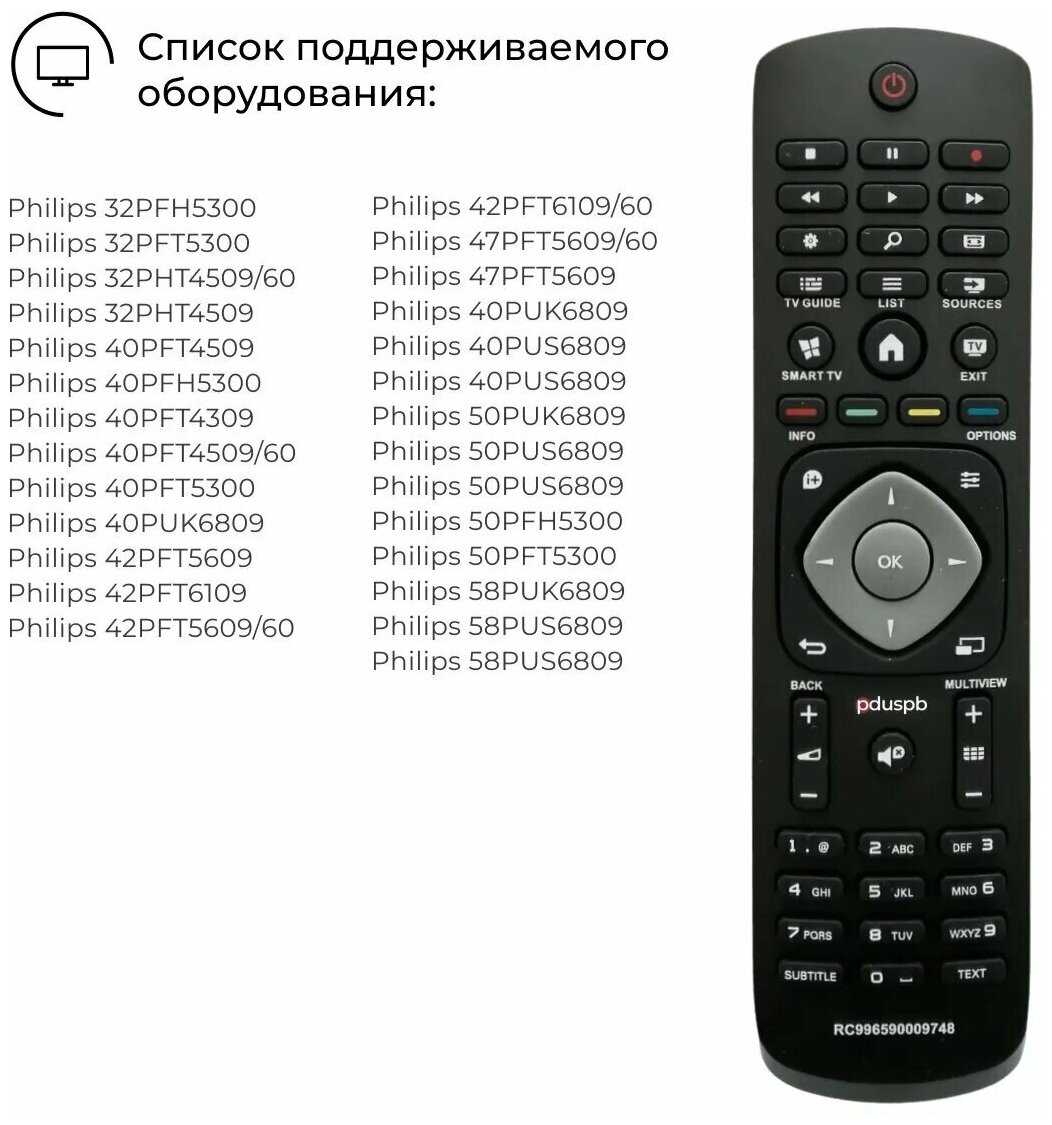 Характеристи PduSpb Модельный пульт RC996590009748 для телевизоров Philips