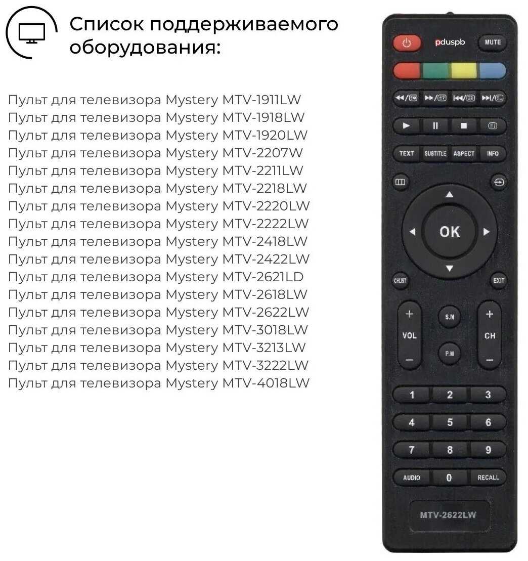 - + Пульт классный, подошёл к телевизору MYSTERI