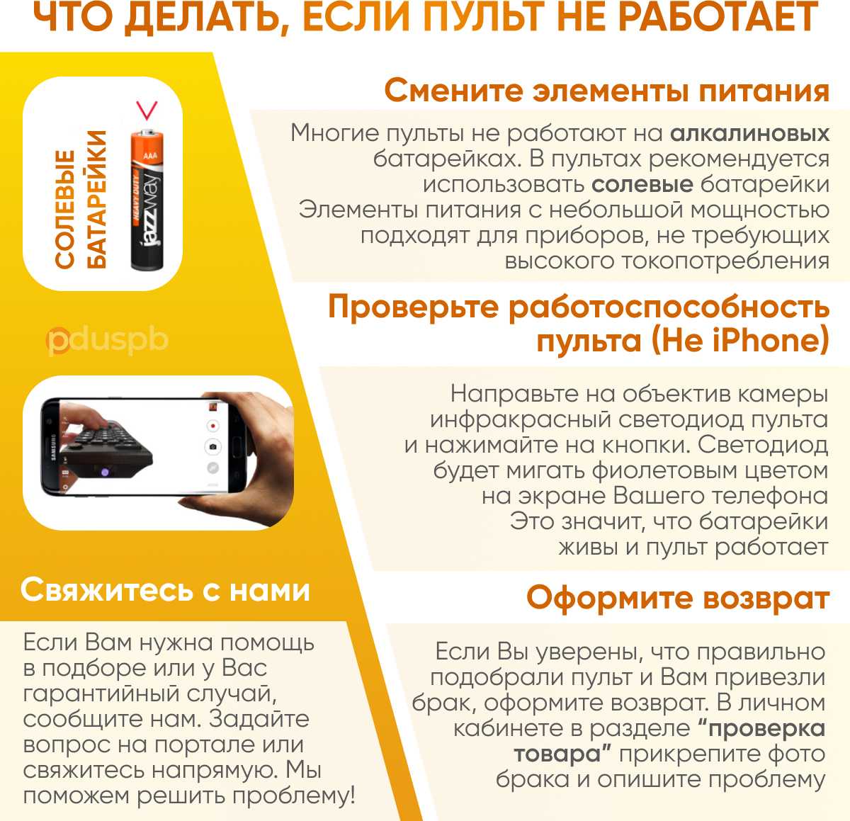 Не сразу подключился. Если не работает с первого раза попробуйте разные батарейки. Пульт очень тонкий и аккуратный, поэтому запаситесь мизинчиковыми батарейками - АА не подходят