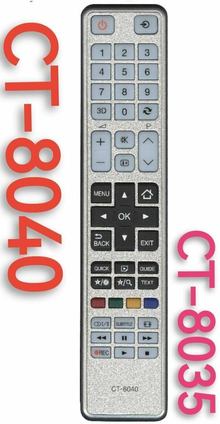 Назначение : | Пульт CT-8040 подходит к телевизорам Toshiba: 40T5445DG, 48L5435DG, 48L5441DG, 48L5455R |