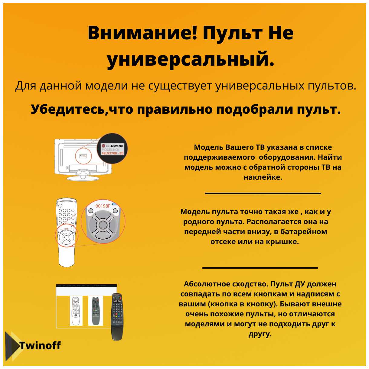 - + отличный пульт...один в один,как наш. подошёл сразу, проблем не возникло.
