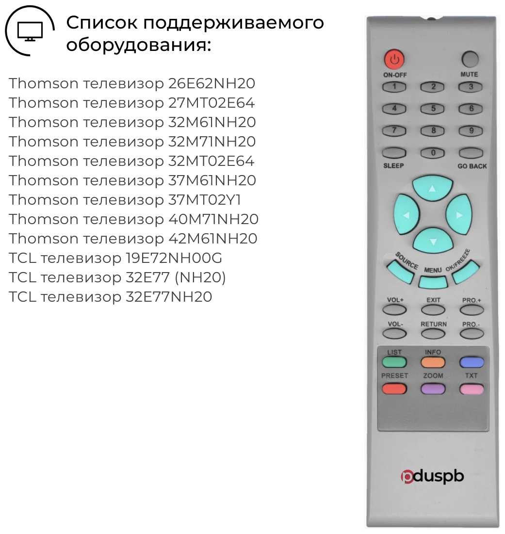 - назначение: для Пульт подходит к телевизорам: Thomson 26E62NH20