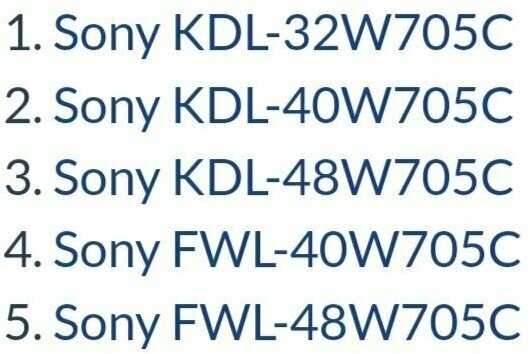 | Назначение : | Sony FWL-40W705C, KDL-32W705C, KDL-40W705C, KDL-48W705C, FWL-48W705C |