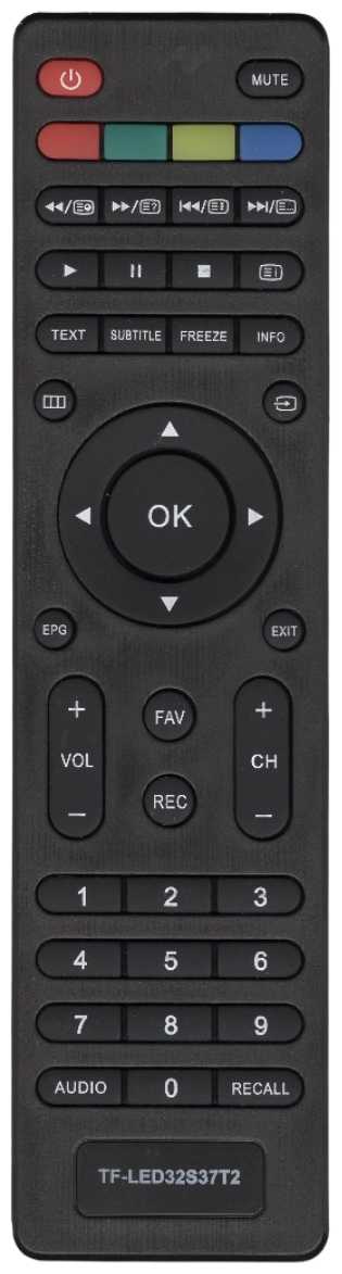 Назначение : | Пульт подходит к телевизорами TELEFUNKEN: TF-LED24S38T2, TF-LED32S37T2, TF-LED32S38T2, TF-LED32S39T2S, TF-LED32S41T2, TF-LED42S37T2, TF-LED42S39T2S, TF-LED48S39T2S. |