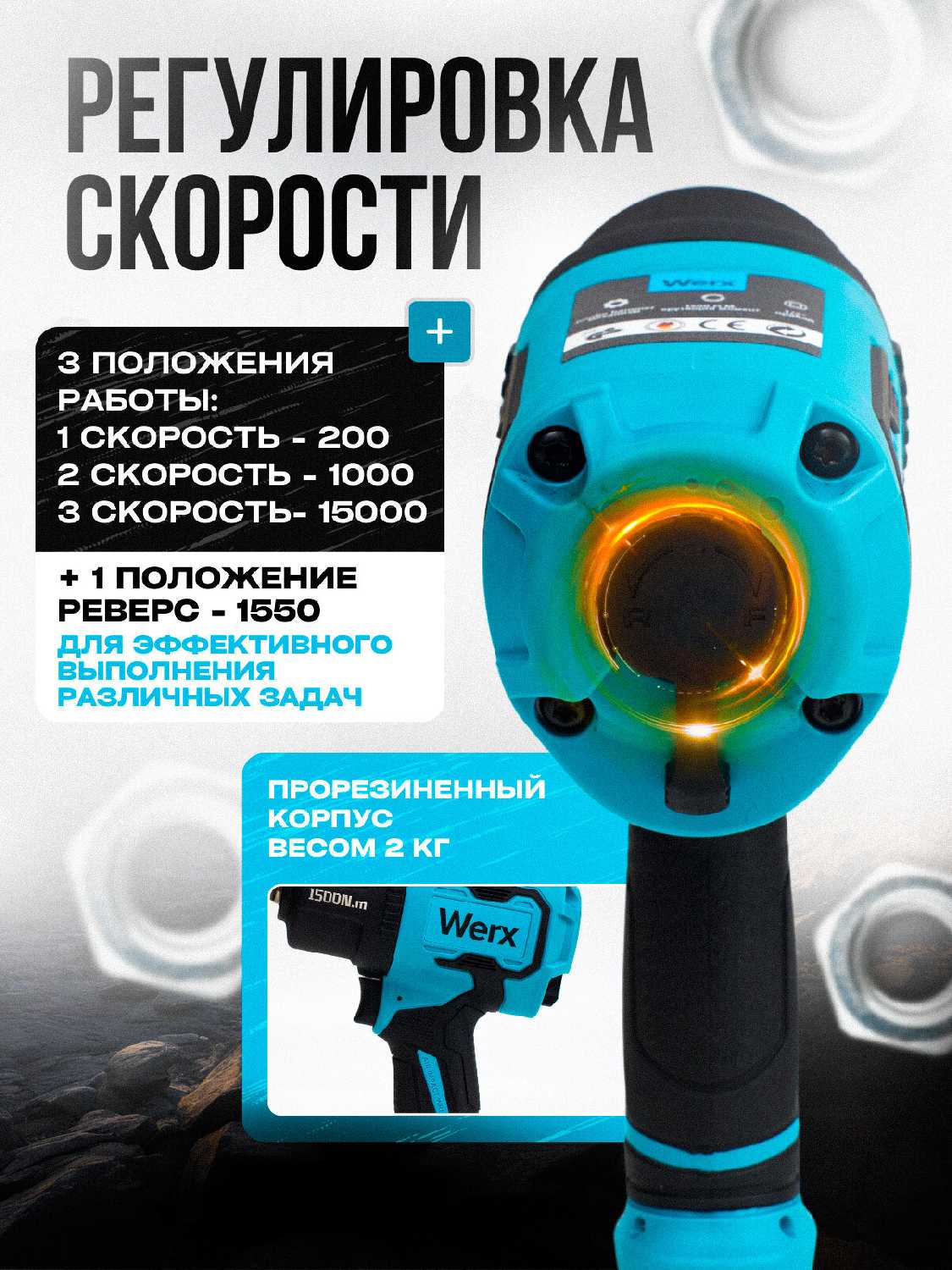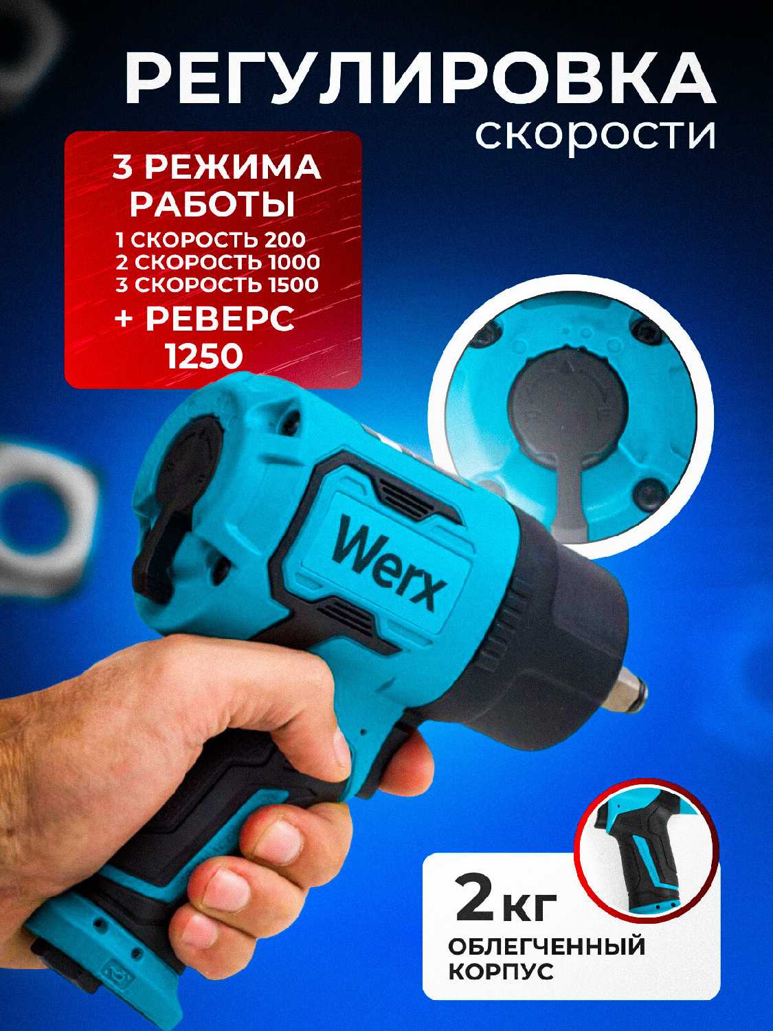 - + крутит хорошо заржавевшие гайки,порадовал