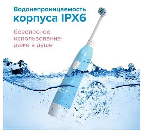 - Не боится воды, безопасна для детей, щетку рекомендуют менять по износу насадок.