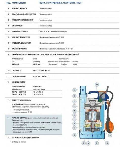 - тип насоса: погружной