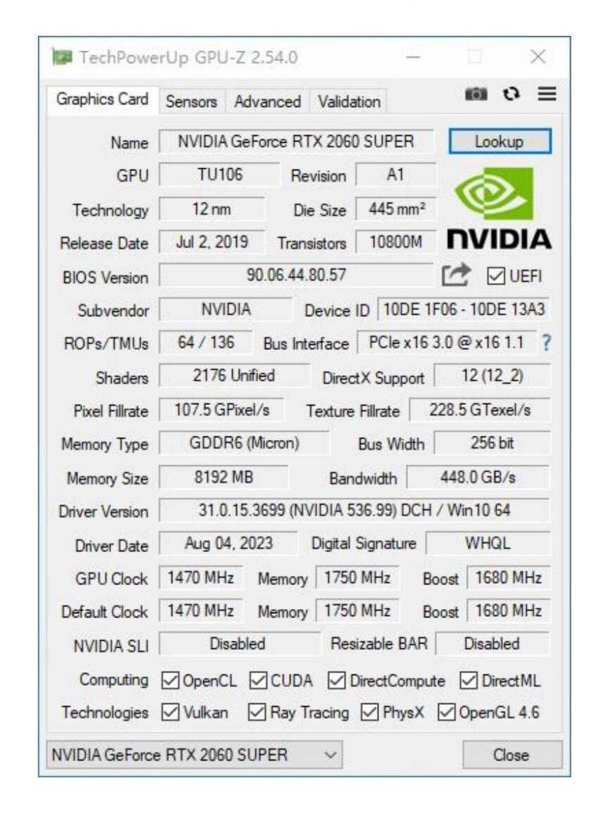 Название видеокарты : | NVIDIA GeForce RTX 2060 SUPER |