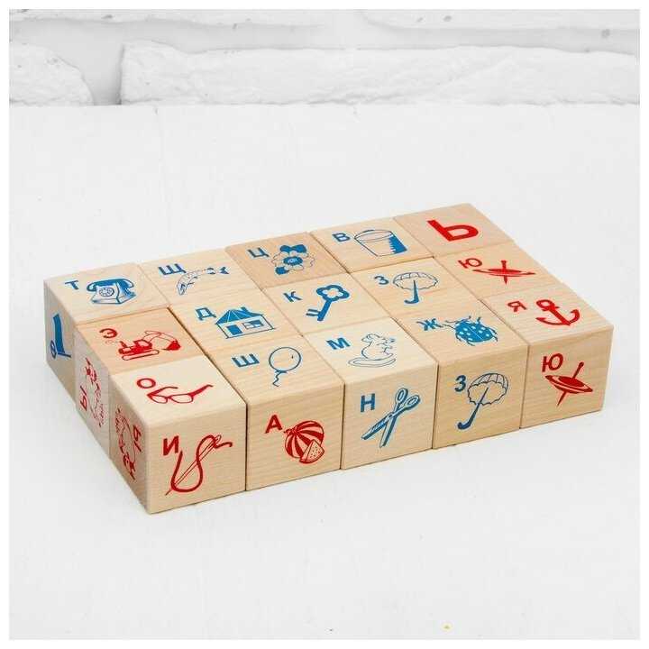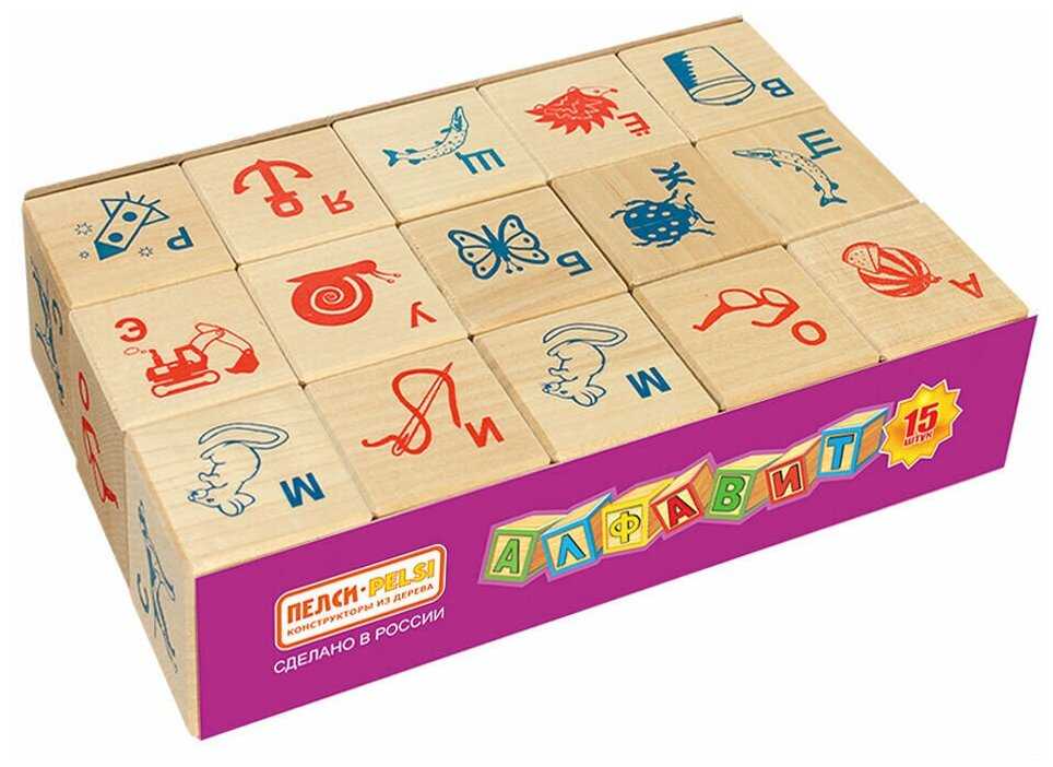 Комплектация : | 15 деревянных кубиков с нарисованными буквами и картинками |