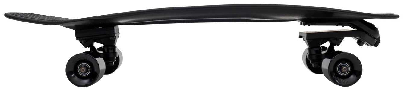 - + Широкая дека. Очень маневренный. Мягкий плавный ход. Широкие колеса с большой площадью касания. Не заикается на мелких камнях, ветках и плитке. Вафля с имитацией шкурки, удобно. При этом есть ощущение, что, если и будет стираться, это не будет выглядеть так ужасно, как стирающаяся шкурка. Вообще с внешним видом все ок — помыл, и он опять как новенький. Крепкий, реально выдерживает 120+ не особо прогибаясь. После дождя нормально кататься, если прям в самые лужи не лезть. Пластиковой деке так вообще до влаги никакого дела.
