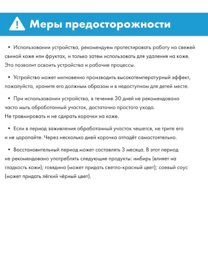 начитался коментариев сначала думал ну пипец, пишут что ничего не понятно и нет инструкций на русском! Блин да мне она и не понадобилась, там делов то, вкрутил полнотелую иглу и все, прижигай хоть до корейской пасхи! Фотки не добавлю) но результат действительно есть, и боли кстати практически нет! Пишут что как будто наколку колят, нет! Немного покалывает если только, и это без всякого обезболивающего!