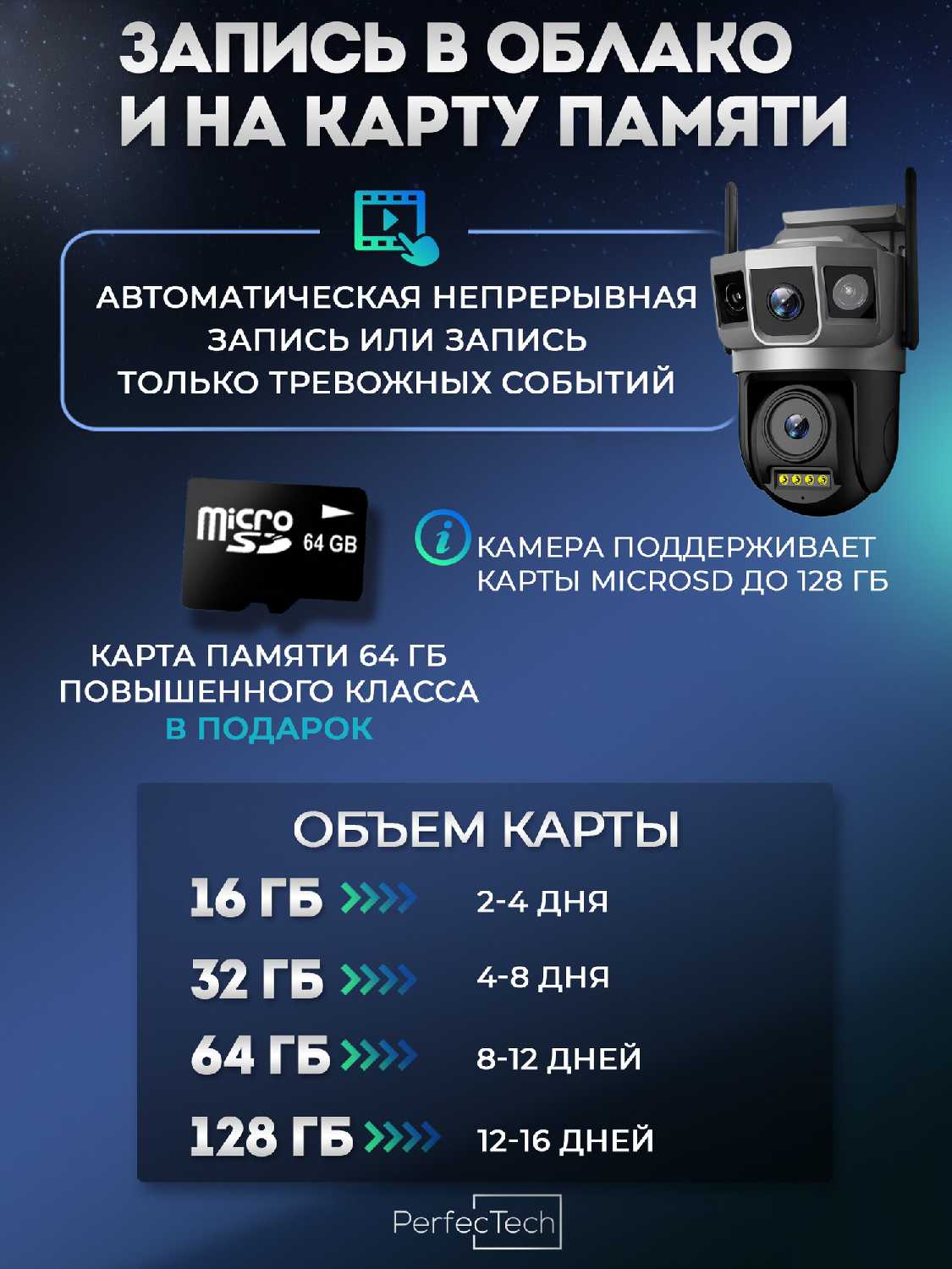 - + Камера радует широким обзором, аж 360 градусов, что позволяет охватить всю нужную территорию без слепых зон. Соседи, которые раньше то и дело жаловались, теперь стали заметно тише в своих претензиях, а пропажи фруктов и овощей вроде огурцов, помидоров или яблок прекратились совсем. Устройство получилось настоящей бомбой по качеству изображения, особенно в сравнении с тем, что было у соседей раньше. В частном доме с интернетом только через мобильный это спасение: камера работает с сим-картой, которая идет в комплекте от телет2, и там можно сразу выбрать подходящий тариф. Получается независимая система, которая не зависит от домашней сети. Еще круто, что дают месяц бесплатного облачного хранилища, а потом за два бакса в месяц с минимальными настройками можно продолжать, это китайское облако от производителя, чисто свое. Плюс в комплекте карта памяти на 64 гигабайта, которой хватает на целую неделю записей по тревоге, и она пишет параллельно на карту и в облако. Карту легко форматировать самому, так что места всегда хватает. Если есть камера на улице, то облако обязательно нужно, чтобы ничего не потерять, если кто-то попробует сорвать или унести.