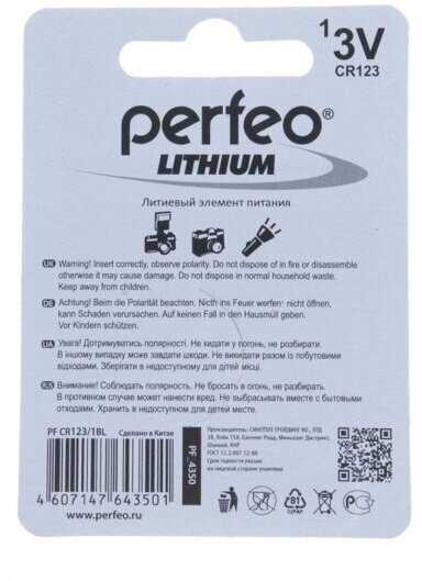 14 отзывов пользователей o Perfeo CR123A Lithium (4 шт)