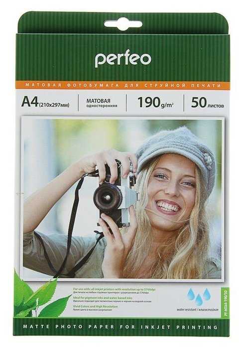| Дополнительная информация : | Фотобумага А4 матовая 190 г/м2 100 листов Perfeo |