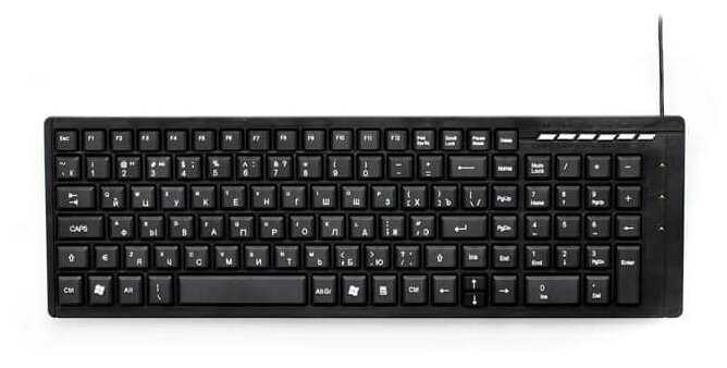 - + Клавиатура имеет эргономичную форму и стоит на столе под наклоном. Это создает удобство при длительной работе за компьютером, снижая усталость рук. Модель имеет 113 клавиш мембранного типа.