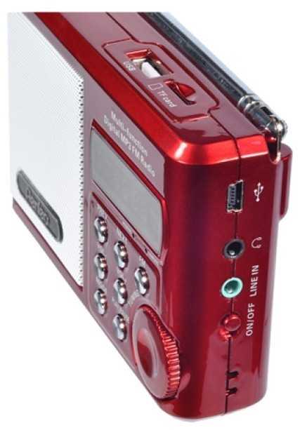 - + Шикарный приёмник за свои деньги. Лучше многих аналогов которые дороже, и более распиаренные. Несмотря на свой довольно неприметный вид, на удивление даёт очень хороший звук. Корпус собран качественно, ничего не люфтит и не скрипит. Свою стоимость отрабатывает на 200%. Согласен с предыдущими отзывами, что можно смело покупать в качестве бюджетного подарка. Ещё из плюсов, это комплектный аккумулятор BL-5c (такой часто ставится в кнопочные телефоны), емкостью 1000мА , при полном заряде на средней громкости заряда хватает на 10-15 часов работы. Размер меньше чем 11 айфон, вес всего 45 грамм, можно спокойно брать его в любое место и слушать радио, или же музыку с флешки/карты памяти. Вообщем за такой бюджет конкурентов у данного аппарата просто нет.