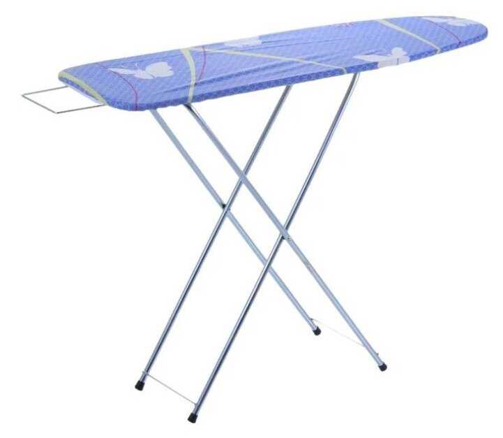- + Два уровня высоты, достаточно широкая (удобно гладить постельное белье), мягкий х/б чехол, устойчивая, есть выдвижная подставка для утюга, в сложенном виде занимает мало места, недорогая