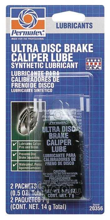 | Дополнительная информация : | Предварительно очистить детали очистителем тормозов Permatex. Затем нанести необходимое количество смазки, удалить излишки. Не наносите смазку на фрикционные части и диск тормоза. |