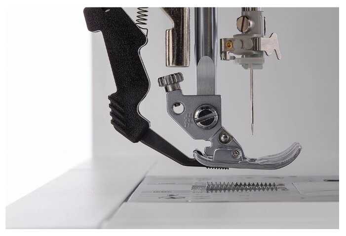 - + Идеально подходит для тканей любой плотности, берет как самое прихотливое, сопливое кружево и сетку, беспрекословно прошивает футор уплотнением х4. Стильно выглядит, быстро заправляется, есть автоматический нитевдеватель. Удобная функция закрепки, получается незаметно и очень прочно, выполняется автоматически шириной 1 стежек. Так же есть удобный, стильный пластиковый крышка-чехол на машинку, чтобы не собирала пыль. Работа за этой машинкой превращается в райское наслаждение. Она работает очень тихо, строчки получаются очень ровными и аккуратными, хехе можно даже руками ткань не держать, машинка все сделает сама) у нее очень удобная пластиковая лапка с красными наметками, что позволяет более точно следить за тканью под лапкой, от этого еще более ровные строчки . Так же есть вспомогательная лапка, которая помогает ткани двигаться сверху, использую ее всегда, если шить ткань с рисунком, добиваясь идеального совмещения рисунка, эта лапка лучший помощник . Готова петь этой машинке серенады и взять ее в незаконные жены