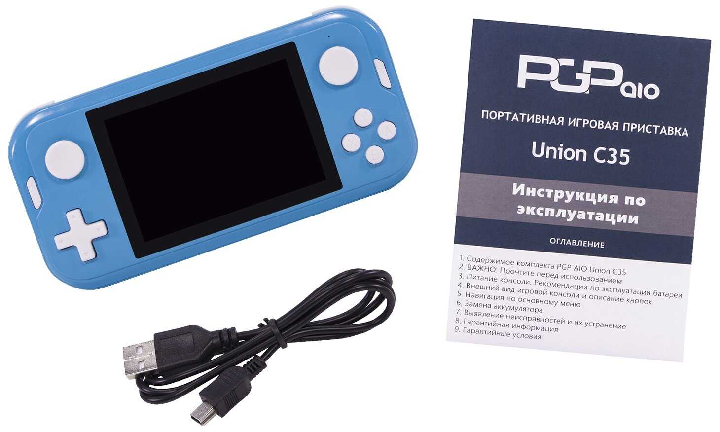 В комплекте поставляется флешка объемом 8 ГБ, отформатированная в FAT32. Консоль официально поддерживает флешки только до 8 ГБ, но некоторые пользователи успешно используют носители большего объема (16 ГБ, 32 ГБ), отформатированные в exFAT. Для зарядки используется устаревший порт Mini-USB, а комплектный кабель часто бывает низкого качества. Пользователи рекомендуют сразу использовать более надежный кабель и блок питания от современного смартфона с силой тока 2А для стабильной и быстрой зарядки. -
