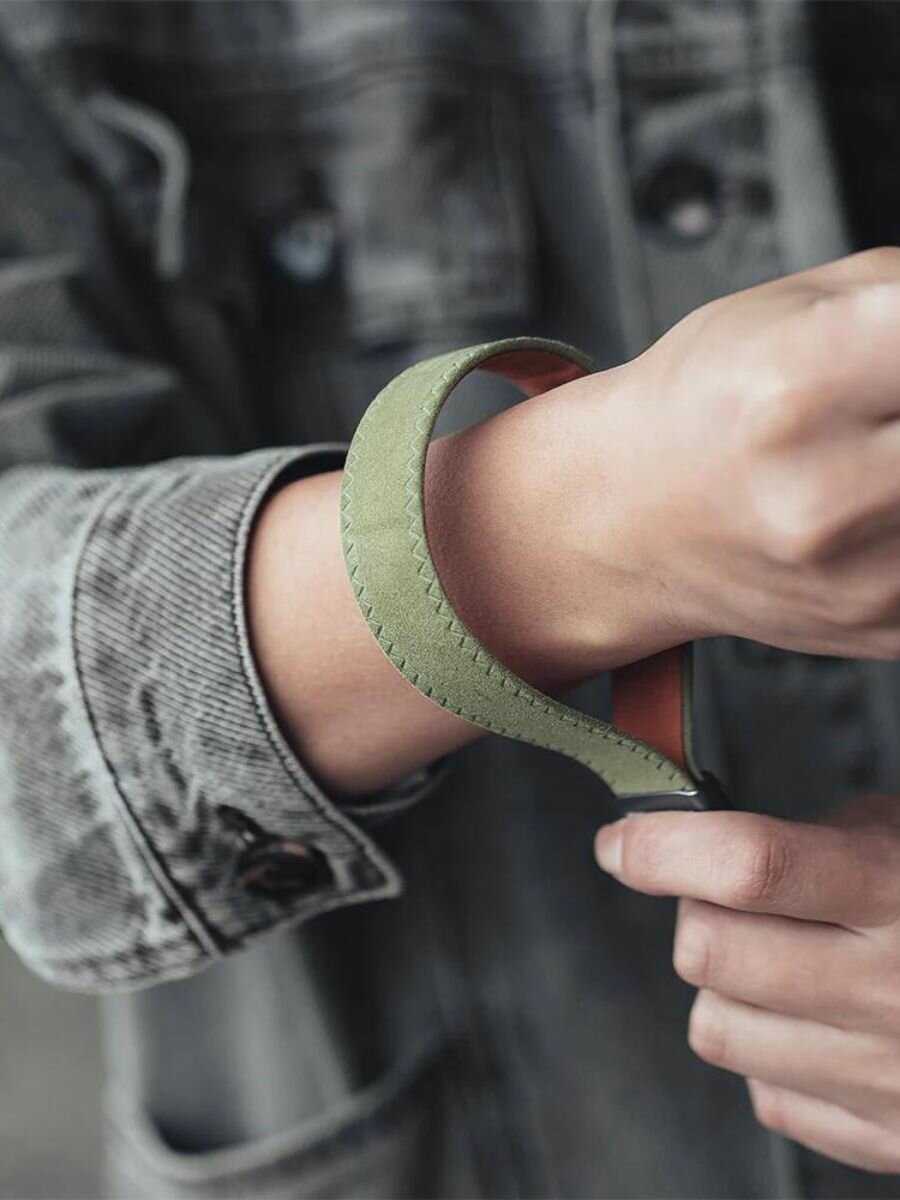 - + удобно надевать, хорошо сидит на руке, удобно закатывать на руку когда фотоаппарат в сумке. выглядит надёжно