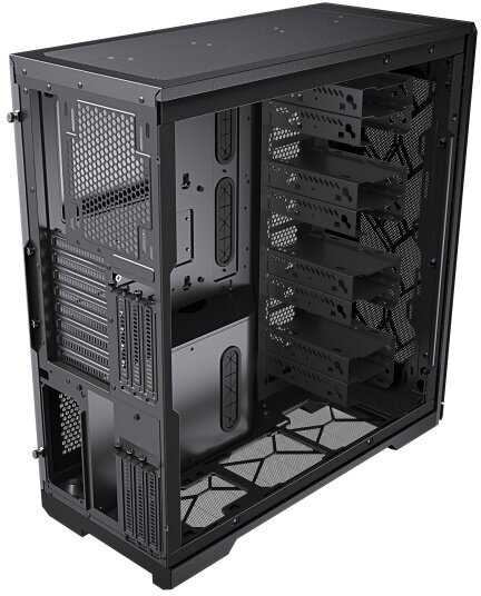 - В него много можно поместить, почти всё внутреннее пространство доступно, почти нет недоступных изза дизайнерских решений зон. У меня влезли 2 бутерброда с 360мм радиаторами и 19 вентиляторов.