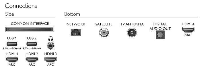 В телевизоре нет аналоговых входов, все 4 входа HDMI имеют ARC, то есть двухстороннюю передачу аудиоданных между сопрягаемыми устройствами. Имейте в виду, что гнездо оптического аудиовыхода очень тугое, и кабель в него нужно вставлять плоской частью к телевизору до щелчка фиксатора, приложив заметное усилие, чего в других аппаратах не встречал.