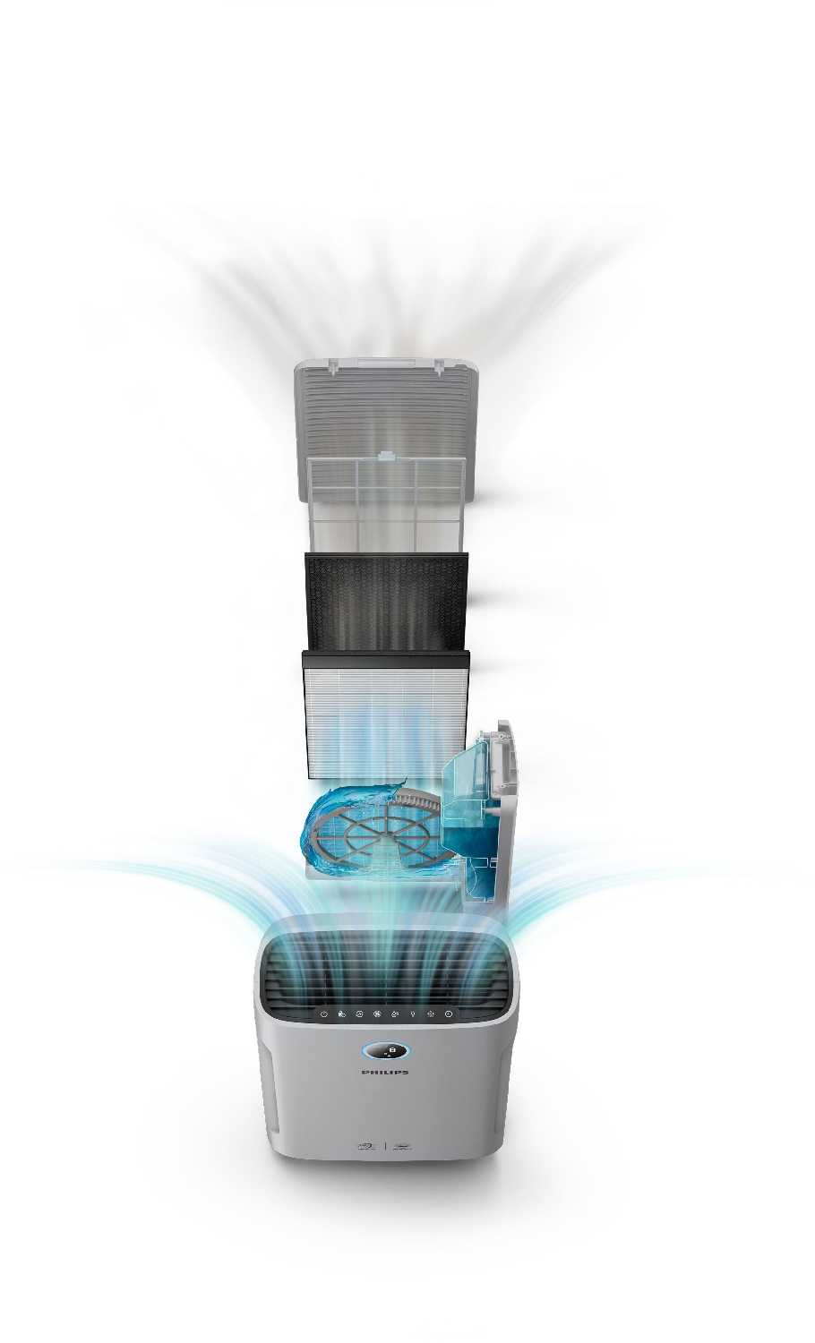 многофункциональный комплекс с очисткой воздуха и увлажнением, компактный размер, маневреность.