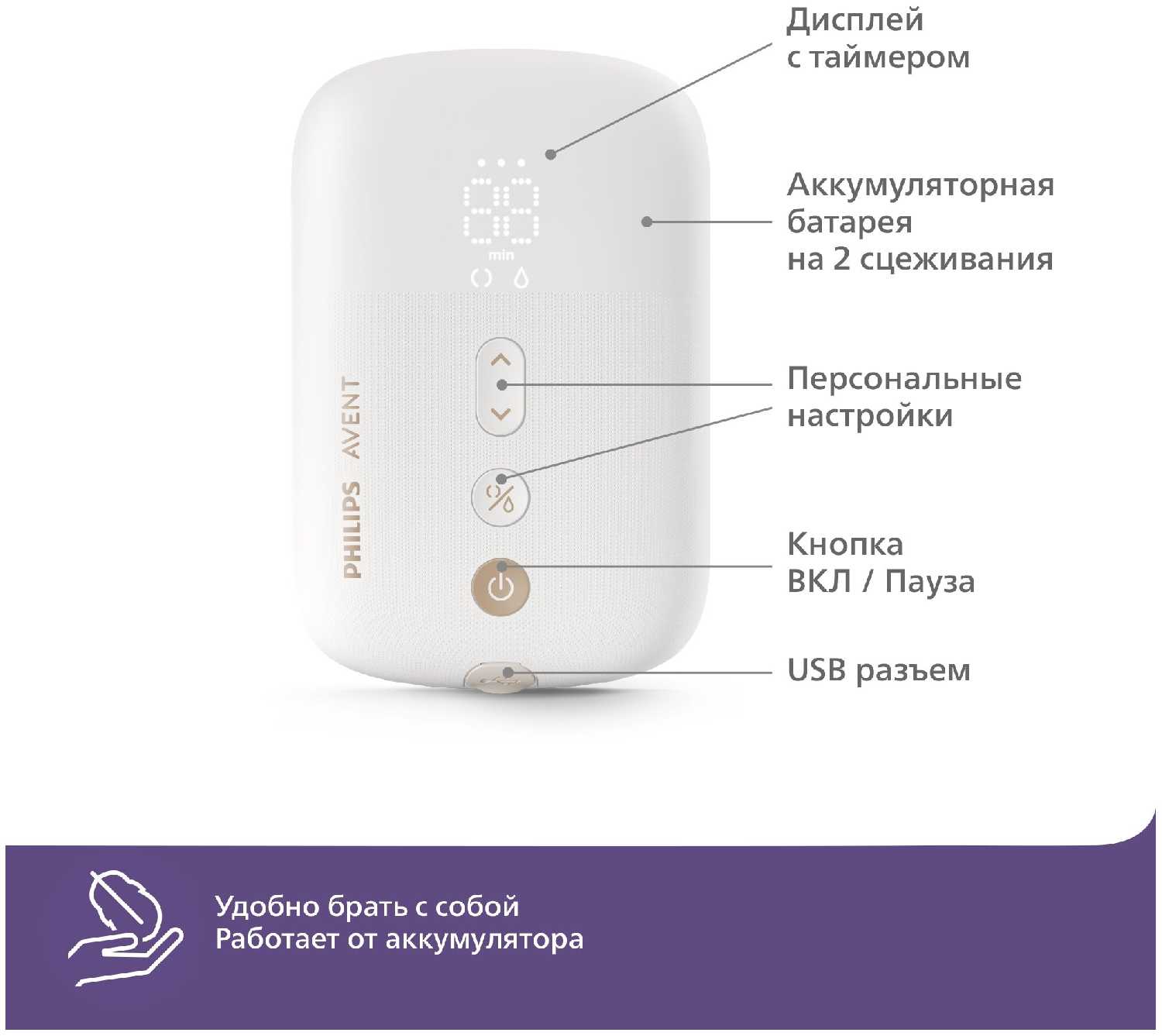 - + Красивый, автономный, очень удобная насадка, аккуратное сцеживание, нет боли, подходит при мастите, удобная функция памяти в ночные кормления, плюс молоко сразу идёт в суперскую бутылочку от Phillips.