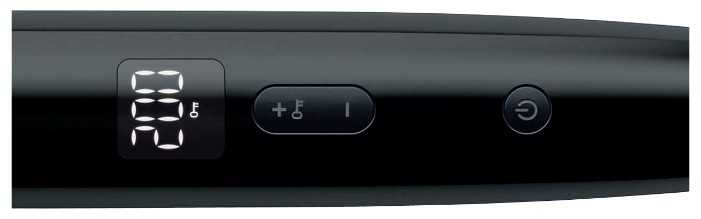 - Цифровой индикатор показывает текущую температуру, удобен для щадящего режима (170°C для тонких волос).