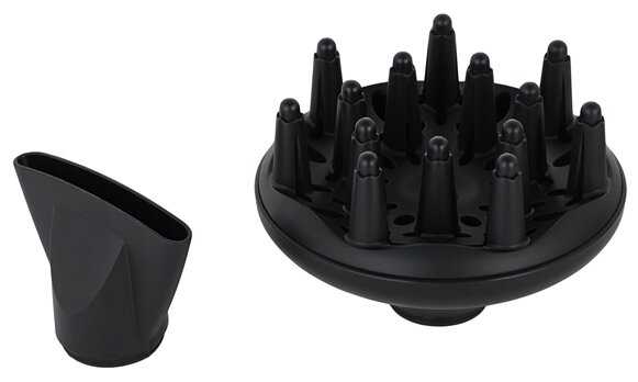 - + Ничего лишнего. Отличная насадка-концентратор. При средней мощности фена сушит быстро. Диффузор как диффузор, на прямых волосах создаёт прикорневой объем.