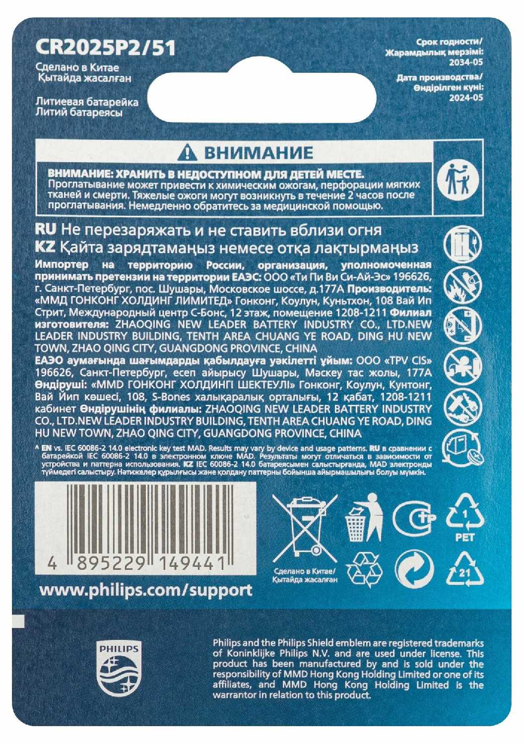46 отзывов пользователей o Philips CR2025P2 (CR2025-2BL)